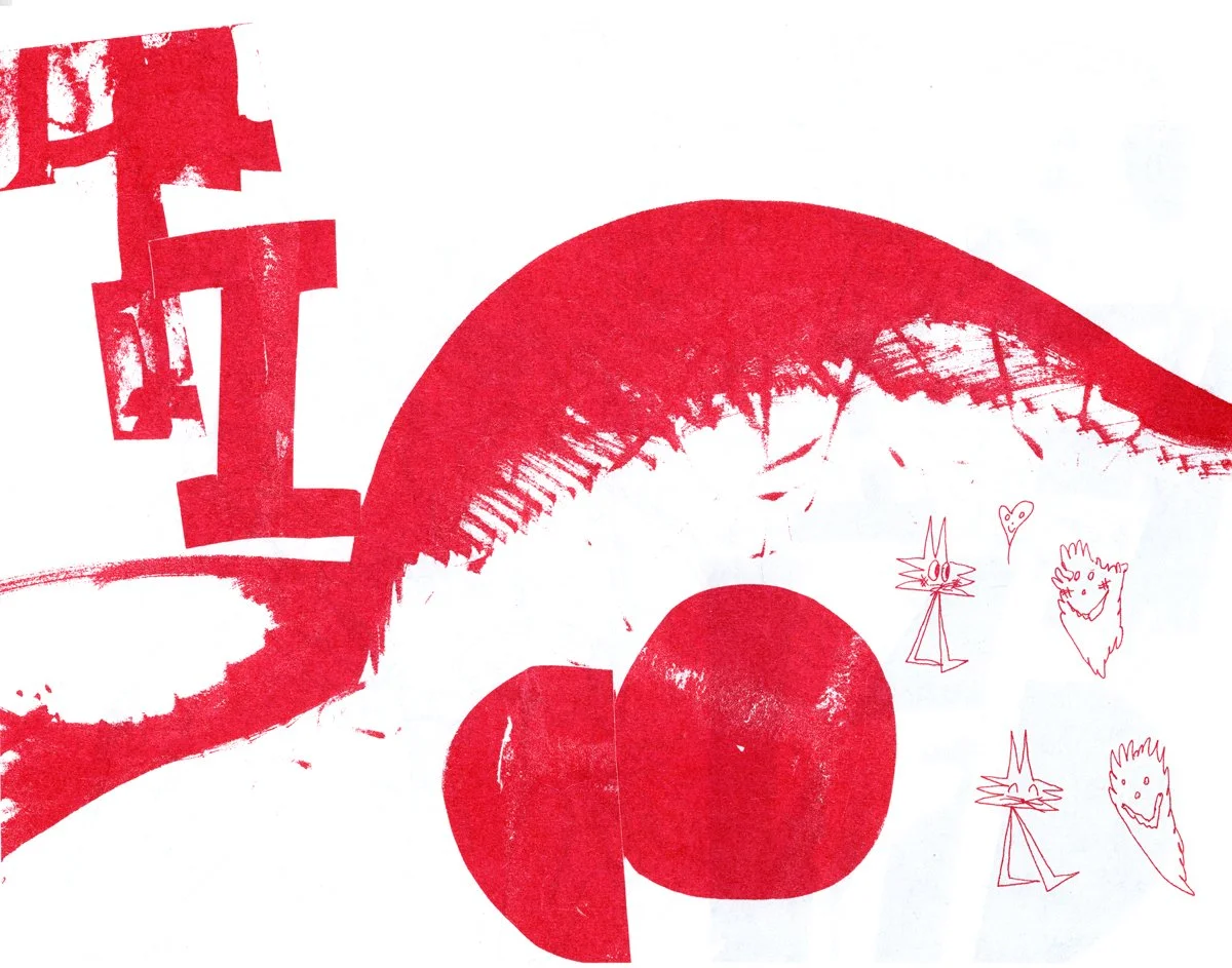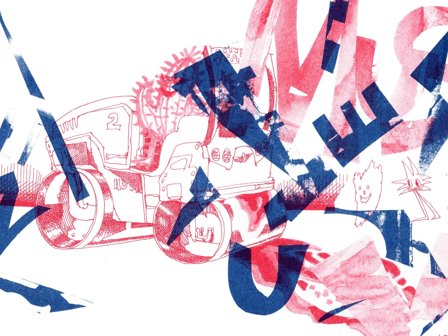 A story about coping with trauma. 25 pages, red and blue inks. risograph printed without digital editing. 2025